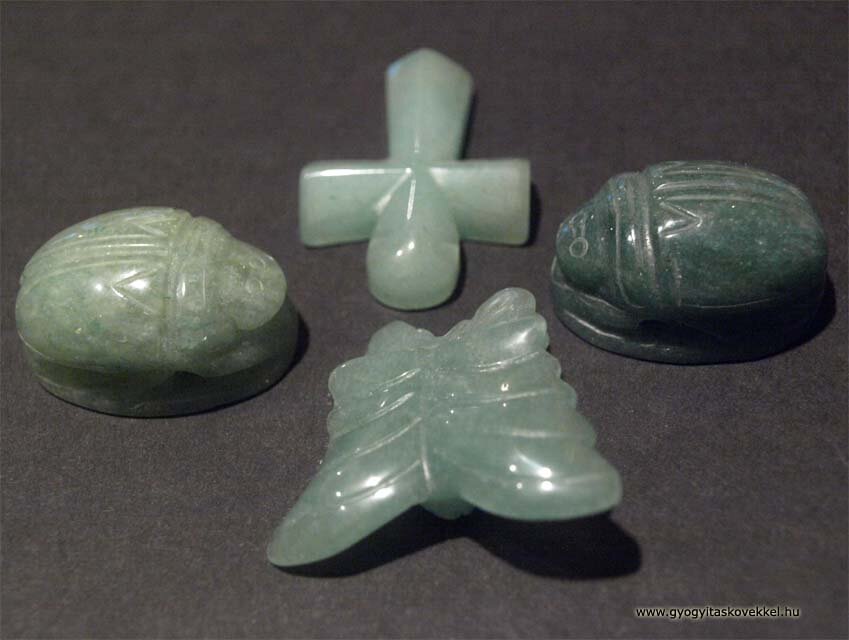 A szívcsakrához kapcsolódik. Szembesít az én képemmel. Feltárja előttem önszeretetem mértékét, önmagam elfogadását. Szembesít önmagammal. Rámutat gondolataim és érzelmeim által mivé teremtem magam. Elvisz a vágyig a változtatni akarásig, hiszen megtapasztalom vele szeretetlenségem mélységeit. Az aventurin végig vezet önmagam szeretetlenségének útján. Elvisz a célig, hogy felfakadhat bennem a tiszta szándék az életem megváltoztatására segítségével belefáradok mindabba, amibe most élek, és segít kitekinteni belőle, hogy az élet igazán szép is lehet. Amikor a bennem felfakadó vágy és érzés utat keres, gyengéden útnak indít ösztönöz s vezet. Tudatosít és erőt ad gondolataim megváltoztatására, hiszen szembesültem vele mekkora káoszt teremtettem velük. Lecsendesít figyelve gondolataimra, megtisztíthatom őket, és a hozzájuk kapcsolódó érzés végre az öröm lehet, és nem a félelem. Segít a félelmekkel szembeszállni s tudni, hogy mit kell csinálni. Szembeszállni és megkérdezni: mire tanítasz engem? Nagy sóhajok és szívdobogás közben csendben örülni, hogy végre végeztem vele, nem fog tovább megnyomorítani. Szép lassan elvégezhetem segítségével a nagytakarítást, a tisztulást. Mert félelmeim kioldásával megszűnnek a szívet megbénító blokkok, és szabadon lüktet mellkasomban. A megkönnyebbülés a kitágulás érzését érezhetem, a felszabadultságot. (Itt átadok neked egy lélegző gyakorlatot, ami ezt a folyamatot meggyorsítja, együtt a kővel gyors eredményt érthetsz el. Ezt a gyakorlatot a bennem Élő Isten adta át, mert gyorsítani, haladni akartam. Tehát: kényelmesen elhelyezkedsz egy széken, úgy, hogy talpaid a földön legyenek. Egyszerűen elkezded figyelni a lélegzetedet, de amikor belélegzel a figyelmed a fejed tetején legyen és lásd, hogy a fejed tetején arany fény áramlik be. A levegő kifújásakor pedig a talpaidra összpontosíts és lásd, hogy az aranyfény kiáramlik a talpaidból. Ezt a gyakorlatot ötvenszer végezd el. Majd fordítsd meg. Az arany fényt a talpaidon szívod be, majd a fejed tetején fújod ki. Ezt is ötvenszer. Egészségedre! De átadok egy meditációs gyakorlatot is, ez is végtelenül egyszerű és nagyon hatásos. Kényelmesen ülj le és összpontosíts a gátra (a hüvely vagy a herék és a végbélnyílás közti terület) ezen a területen képzelj el egy 10 cm átmérőjű aranygömböt. Addig összpontosíts, amíg elkezd bizseregni a gát. Ezt a bizsergést, (vagyis az aranygömböt) vezesd be a farok csont csúcsán a gerincbe, és szép lassan kezd el felvezetni a gerinceden. Nagyon fontos, hogy érezd a bizsergést, az aranygömböt, mely nem más, mint tudatod, figyelmed összpontosított energiája. Csigolyáról, csigolyára haladj, a csakrák központjába állj meg, ott lüktessen néhány másodpercig az energia (1-es csakra: gát, 2-es csakra hátsó örvénye. A köldökkel szembeni pont a gerincen, 3-as csakra. Hát 5-ös csigolya, vagyis a hát közepe, 4-es csakra a két lapocka közötti terület középpontja, 5-ös csakra: kiálló nyakcsigolya, 6-os csakra: a koponyába csatlakozó gerinc pontja, egy lyuk, 7-es csakra: a két agyfélteke közötti terület), hogy az energiablokkok kioldódjanak, és tudatosodjanak, ezt a kezedben lévő kőtől kérd! Amikor felérsz a 6-os csakrához az aranygömböt a koponya falán húzd fel a fejtetőre függőlegesen engedd bele a két agyfélteke közti területre. Ezen a ponton hagyd jó sokáig lüktetni. Majd a nyelved hegyét helyezd a szájpadlásod legmagasabb pontjára és az aranygömböt a két szem közötti területen vezesd bele a nyelved hegyén át a nyelvedbe és lásd, ahogy megnövekszik. Szép lassan lefolyik a torkodon, mellkasodon, hasadon keresztül a gátba. A csakrákban elől is megállhatsz, hogy kitisztuljanak és egészségesek legyenek. Itt megint kérd meg a követ, hogy segítsen neked ebben. Csakra pontok elől: 6-os csakra: két szemöldök közötti terület (a homlokod közepe a 7-es csakrához tartozik) 5-ös csakra: a bemélyedés a torkodon, 4-es csakra: a csecsemőmirigy feletti terület, 3-as csakra: rekeszizomtól a köldökig, 2-es csakra: fanszőrzet feletti terület, 1-es csakra: gát. Az egyes csakra párja a koronacsakra, és fordítva. Nagyon fontos, hogy csakráid egészségesek legyenek, hiszen a kövek a csakrákba kapcsolódnak be. Tudva levő, hogy életünket a jin vezetéken, vagyis elől a hasi oldalon képzeljük el, vagyis álmodozunk és a jang vezetéken, vagyis a gerinc csakra örvényeivel valósítjuk meg. Ebbe a munkába kapcsolódnak bele a kövek, a csakrákon keresztül segítenek. Ezért nagyon fontos, hogy csakráink egészségesek és összehangoltak legyenek. Ez a két gyakorlat, a kövek segítségével begyorsítja ezt a folyamatot. A kövek mindig legyenek a kezedben, és kérd a segítségüket a munkában. Ezt a gyakorlatot naponta többször érdemes megcsinálni. Amikor már könnyen megy és az aranygömb nagy bizsergéssel mozog benned, elég ha tudatoddal hétszer körbe forgatod egymás után a jin és jan pályán és gyorsan. Bátran kísérletezz vele, de mindig a kövek segítségével, akkor nem töltheted túl magad energiával. Egészségedre!) Amikor végre megnyílik a szívem, öröm elárasztja energiarendszerem, szerveim feltöltődnek önszeretettel, és helyreáll önbecsülésem. Rácsodálkozhatok testemre, erre a csodálatos eszközre, összekapcsolódva a testtudatossággal, felfakadhat bennem az örök ifjúság forrása. Megbocsátva magamnak minden tévutat, indulhat az igazi kaland. Szívem megnyílva véget vet a köszvénynek, ízületi betegségnek, térdfájdalomnak, allergiának. Vérem egészséges lesz, normalizálódik vérnyomásom, koleszterin szintem. Immunrendszerem megerősödik, mert megszeretem magam. Bőröm megszépül tükrözve önsz