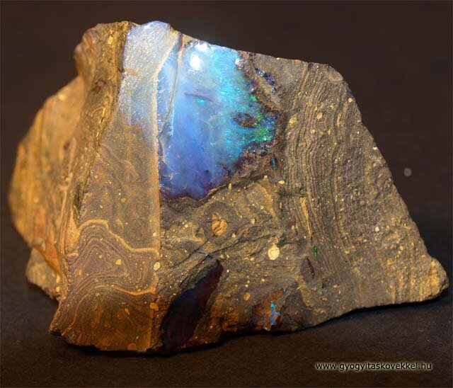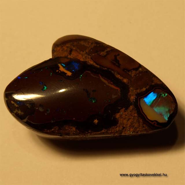 Tulajdonságai: Ásványtanilag: fekete, színjátszó nemes opál